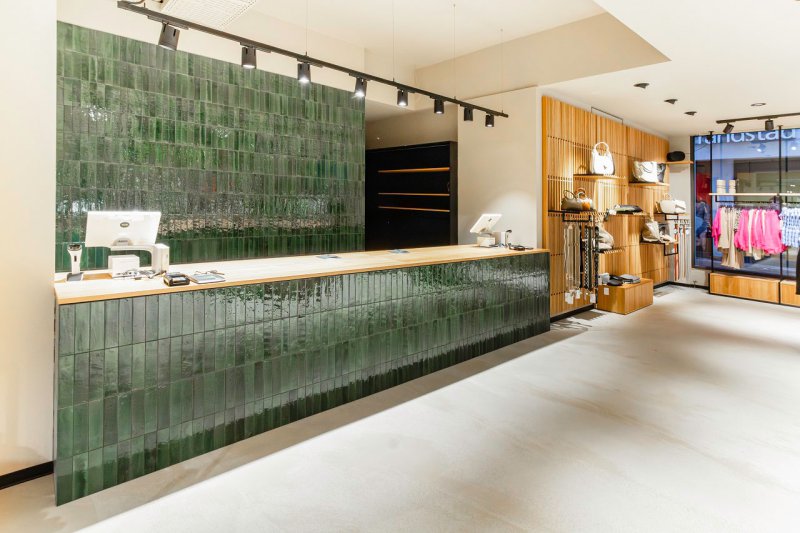 Was wäre besser geeignet, hochwertige Mode in Szene zu setzen, als eine individuelle und extravagante Einrichtung. Die Kombination aus massiver Eiche sowie Messing und dem Fliesenlook der Theke, sorgen für ein abwechslungsreiches Farbspiel. Wir bedanken uns, dass wir auch bei diesem Projekt wieder mit dabei sein durften.